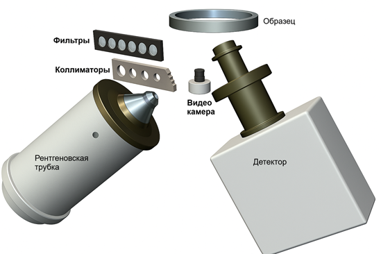 Рисунок 1. Фильтры и коллиматоры в оптической схеме ЭД-РФА