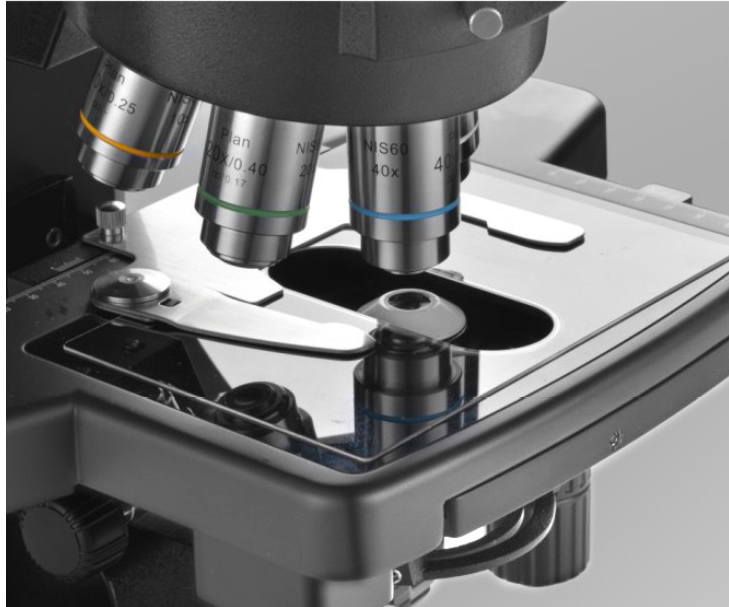 Микроскоп снабжен механическим ограничителем и регулировкой плавности хода для защиты объективов и образцов от повреждений.