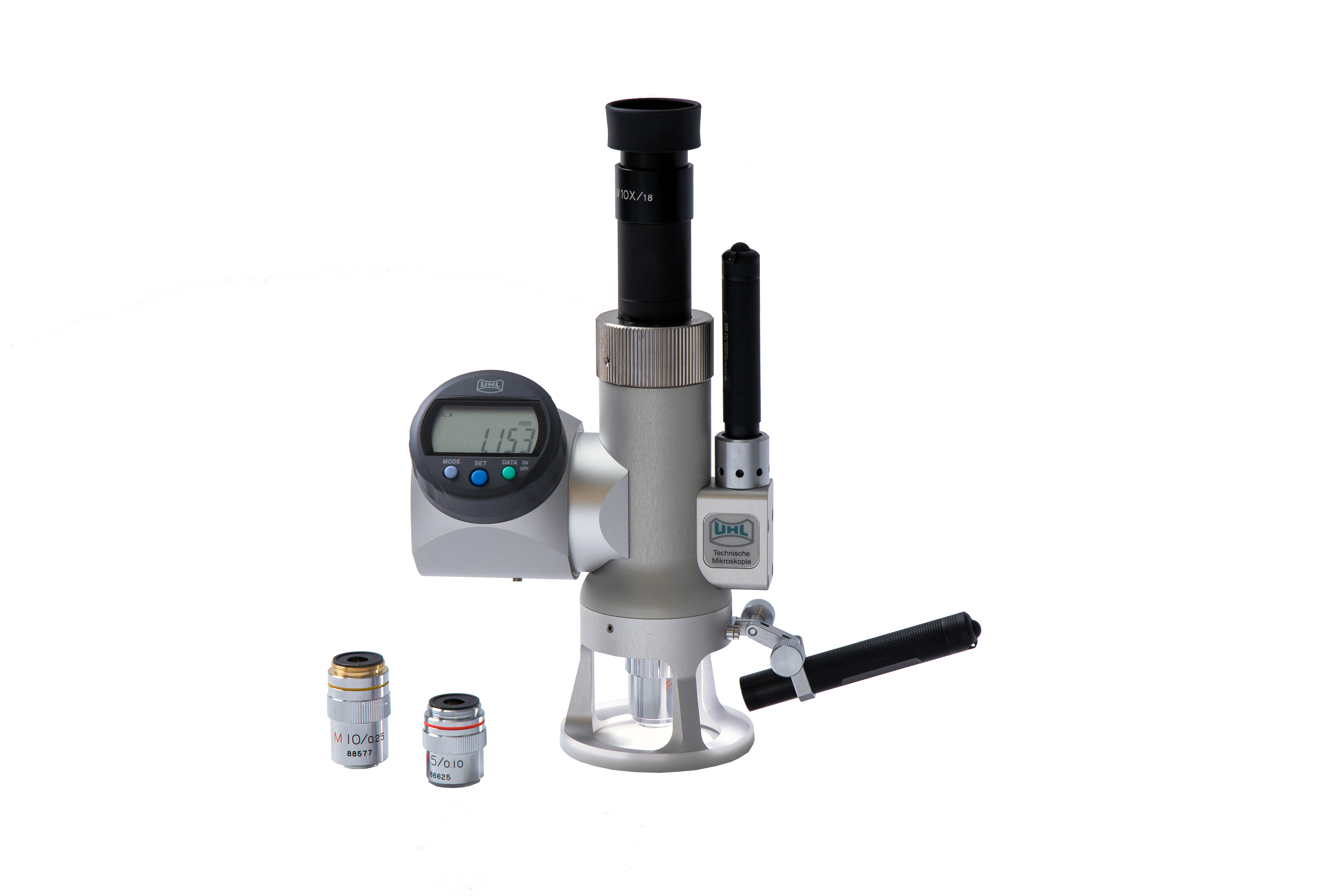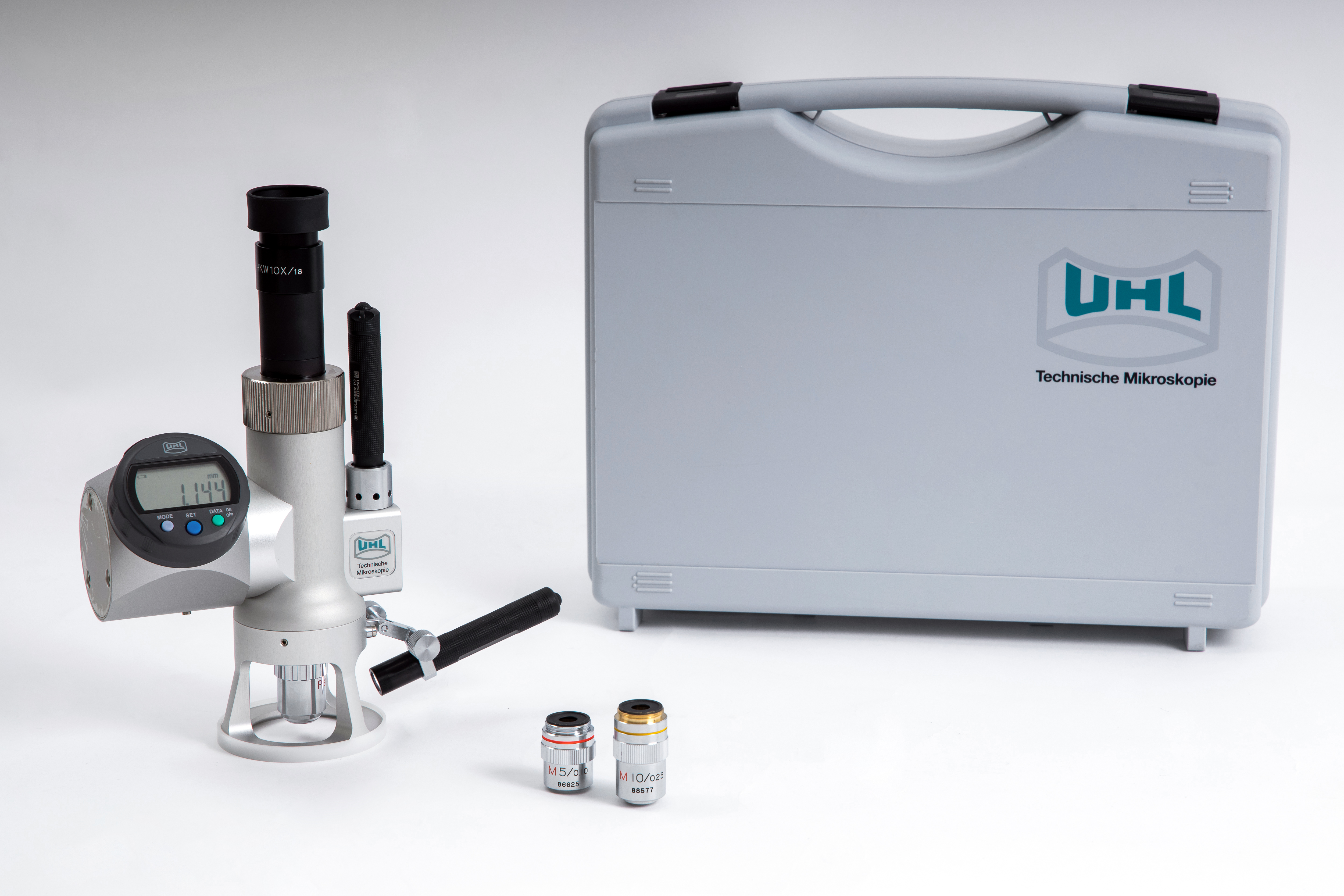 Комплектуется портативными LED источниками освещения и стационарным источником холодного света. Цифровой индикатор микроскопа позволяет контролировать глубину поверхности образца с дискретностью 0,001 мм. Дополнительно по запросу комплектуется специализированной цилиндрической насадкой для исследования труб диаметром 50-200 мм, комплектом для фото/видео документирования и специализированным программным обеспечением для линейных измерений.