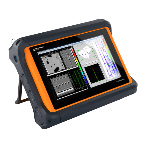 Ультразвуковой дефектоскоп на фазированных решетках Focus Scan RX позволяет быстро и точно выполнить контроль материала на наличие всех типов коррозионных повреждений, сканирование выполняется автоматизированным методом с использованием сканера производства компании Phoenix ISL, который оснащен двумя датчиками по 64 элемента.