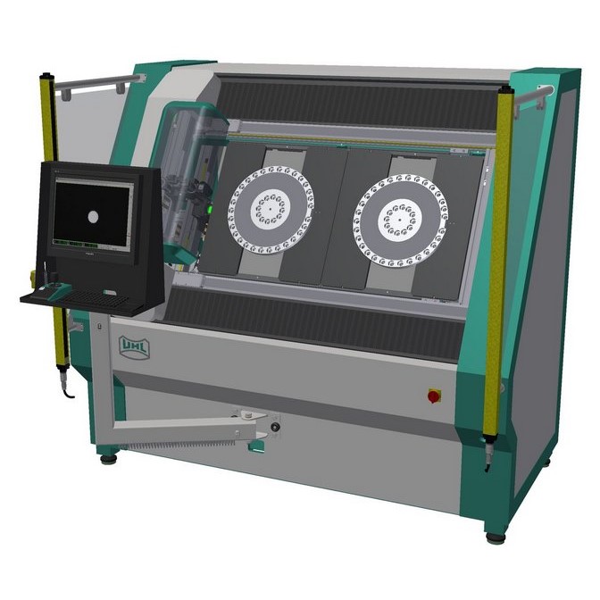 Положение отверстий определяется сканированием. Лазерная подсветка отображает местоположение на фильере для визуального осмотра оператора.
