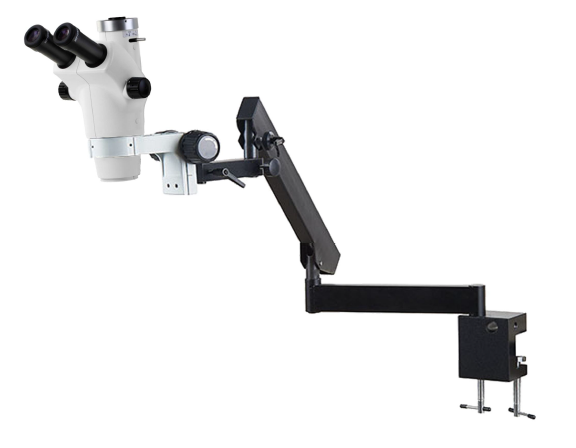 Стереомикроскоп ZY83T-AC1. Стенд Flexarm AC1 с C-образным зажимом: вращается на 360°, расширенная область действия и наблюдение за объектом в любом направлении. Вертикальная высота: высота 400 мм, горизонтальное перемещение: 770 мм.